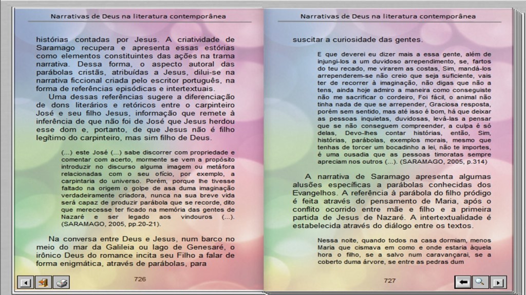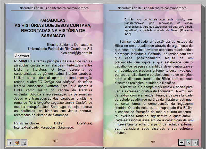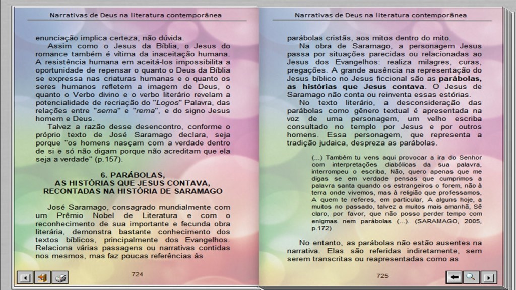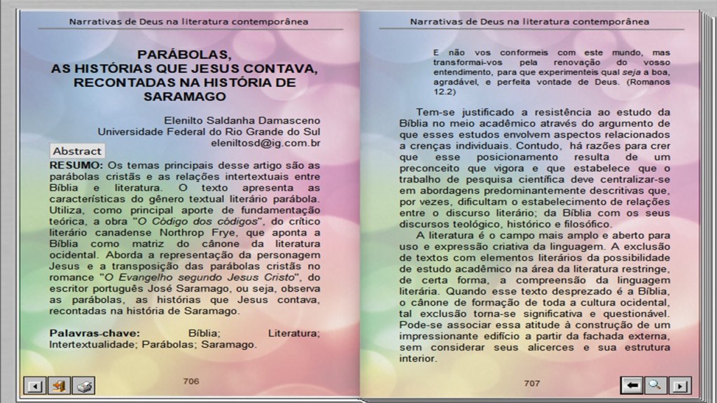 DAMASCENO, Elenilto Saldanha. Parábolas, as histórias que Jesus contava, recontadas na história de Saramago. In NEUTZLING, Inácio (Org.). Narrar Deus numa sociedade pós-metafísica: possibilidades e impossibilidades. São Leopoldo: Casa Leiria / Universidade do Vale do Rio dos Sinos, 2009.
