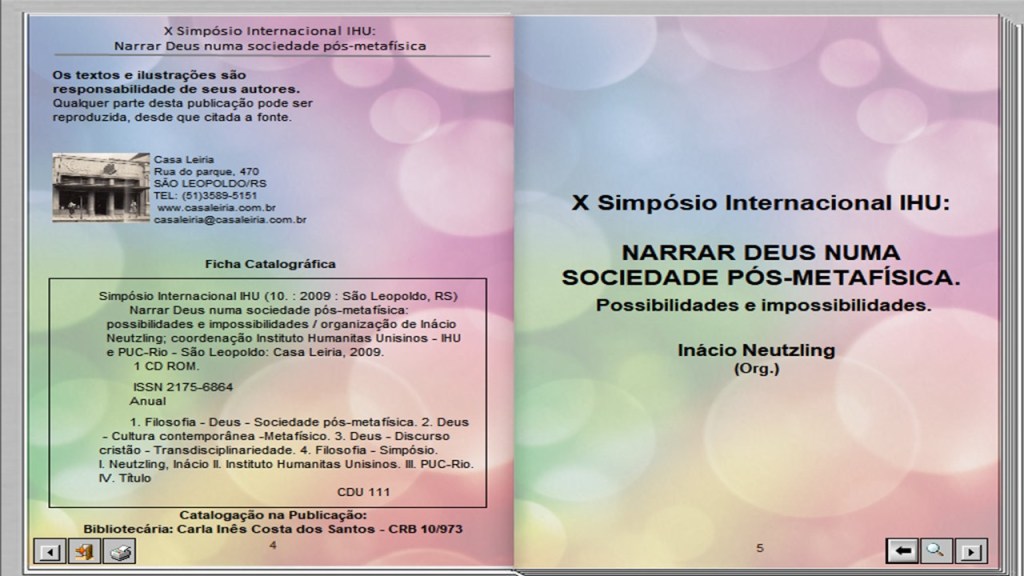 Artigo produzido em participação no X Simpósio Internacional IHU, promovido pelo Instituto Humanitas Unisinos em setembro de 2009, evento cujo objetivo principal foi promover debates em perspectivas transdisciplinares sobre possibilidades e impossibilidades dos discursos sobre Deus em uma sociedade pós-metafísica.