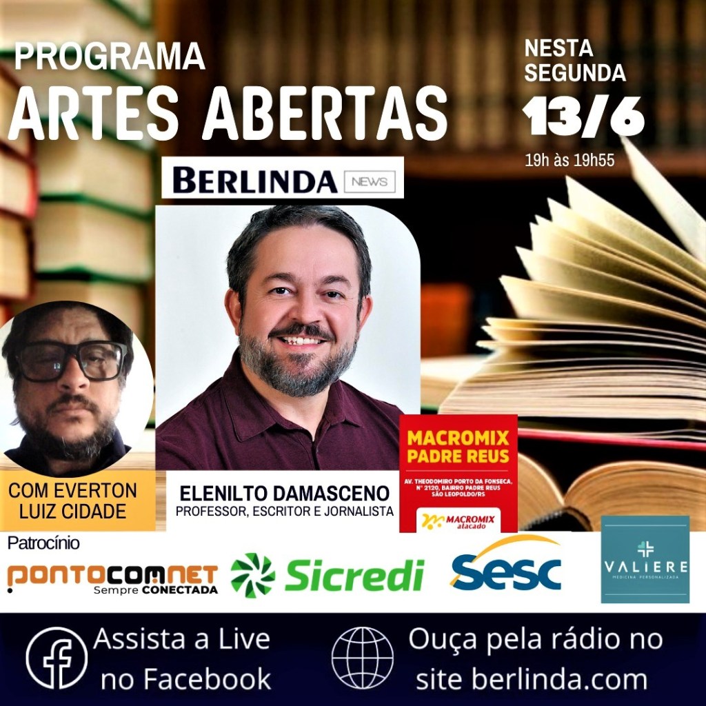 DAMASCENO, Elenilto Saldanha. Artes abertas. São Leopoldo, Berlinda News, 13 jun. 2022. PROGRAMA EM PLATAFORMA MULTIMÍDIA. Entrevista cedida a Éverton Luiz Cidade e Juliano Palinha.
