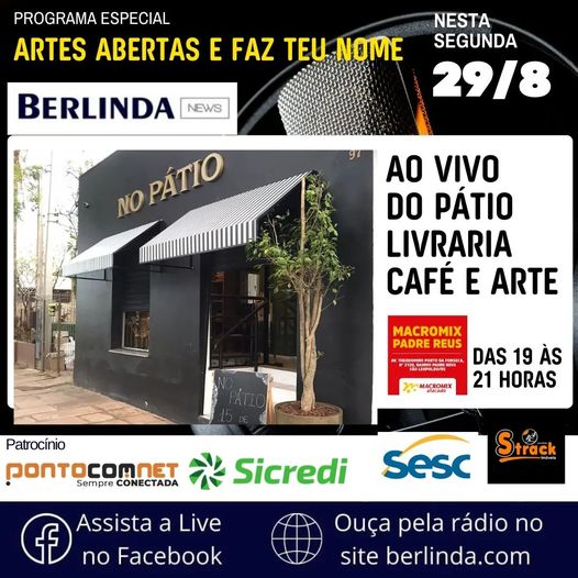 Entrevista nos programas Artes abertas e Faz teu nome, da plataforma de notícias multimídia Berlinda News, na No Pátio Livraria Arte Café.