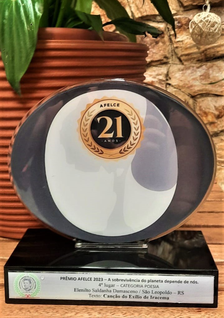 Para minha alegria e surpresa, “Canção do exílio de Iracema” foi premiado com o quarto lugar no Prêmio Afelce 2023, concurso literário nacional promovido pela Academia Feminina de Letras do Ceará.