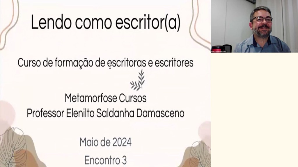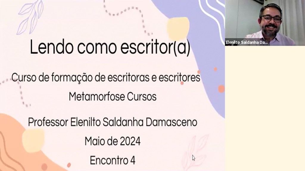 Docência no módulo “Lendo como escritor” do curso on-line de formação de escritores da Metamorfose – encontro 3