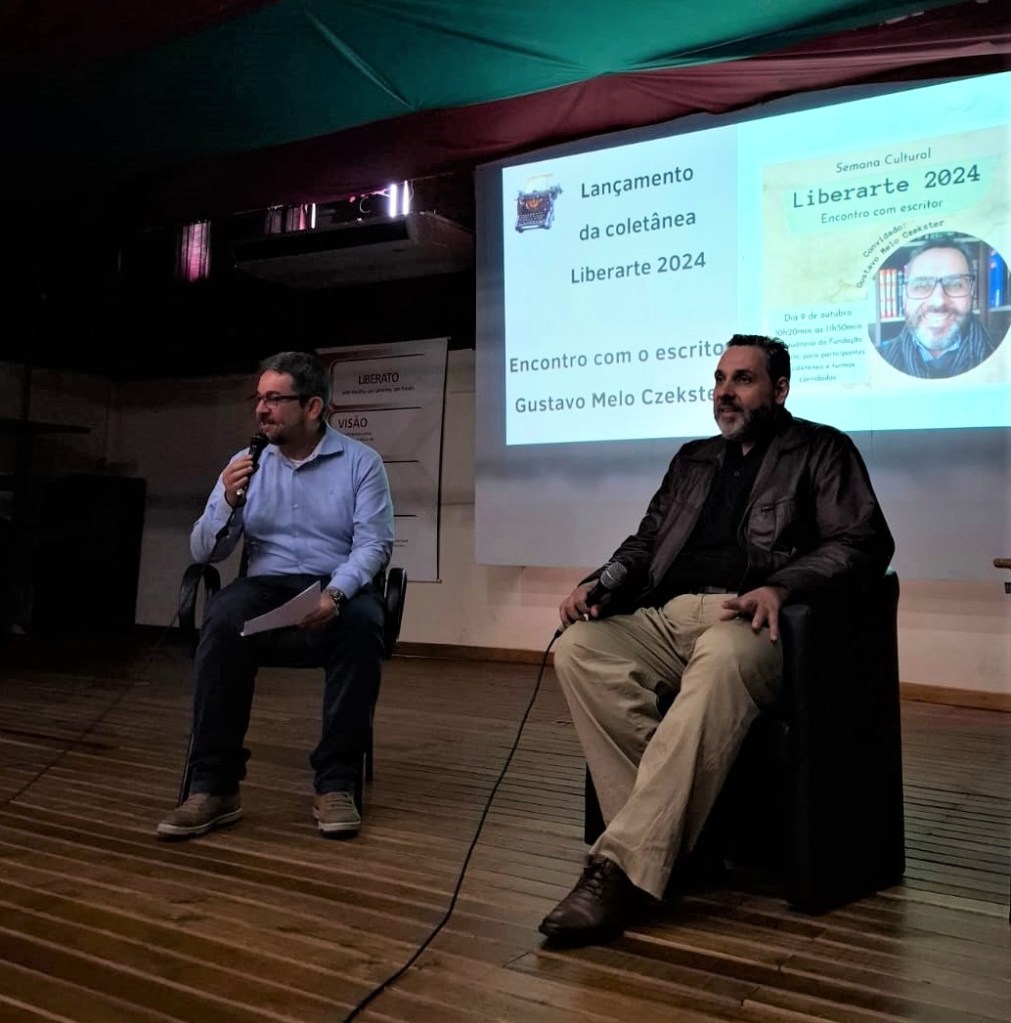 Evento de encerramento do Liberarte 2024: encontro com o escritor Gustavo Melo Czekster e lançamento da coletânea Liberarte 2024