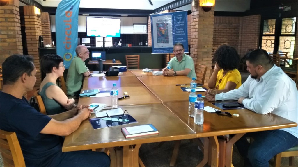 Encontro com grupo de leitoras e leitores na comemoração do quinto aniversário do Clube do Livro “Da Capa ao Infinito”