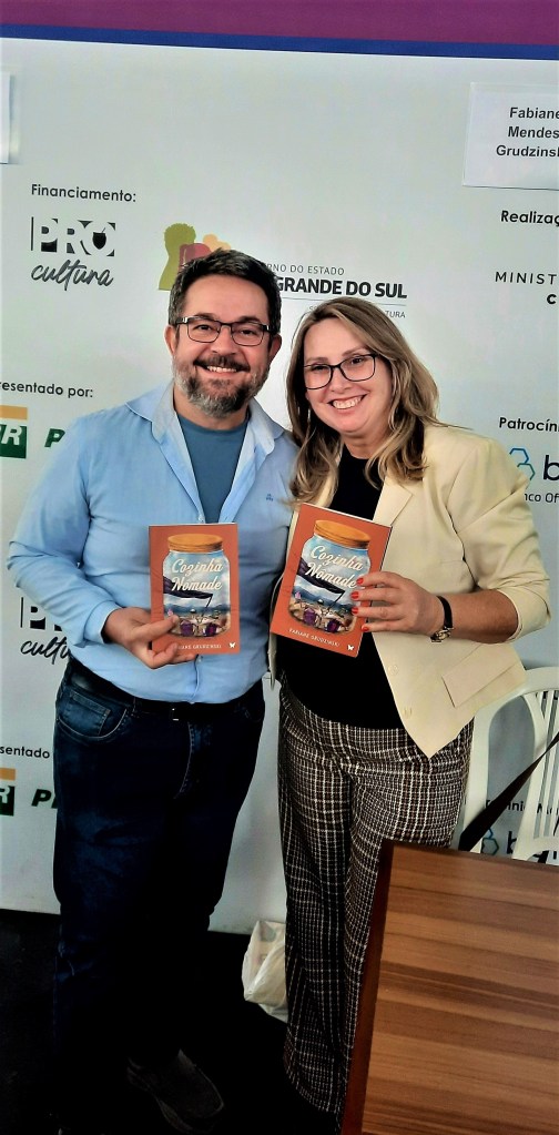 Participação, como revisor editorial, no lançamento de “Cozinha nômade”, de Fabiane Mendes Grudzinski, na 71ª Feira do Livro de Porto Alegre
